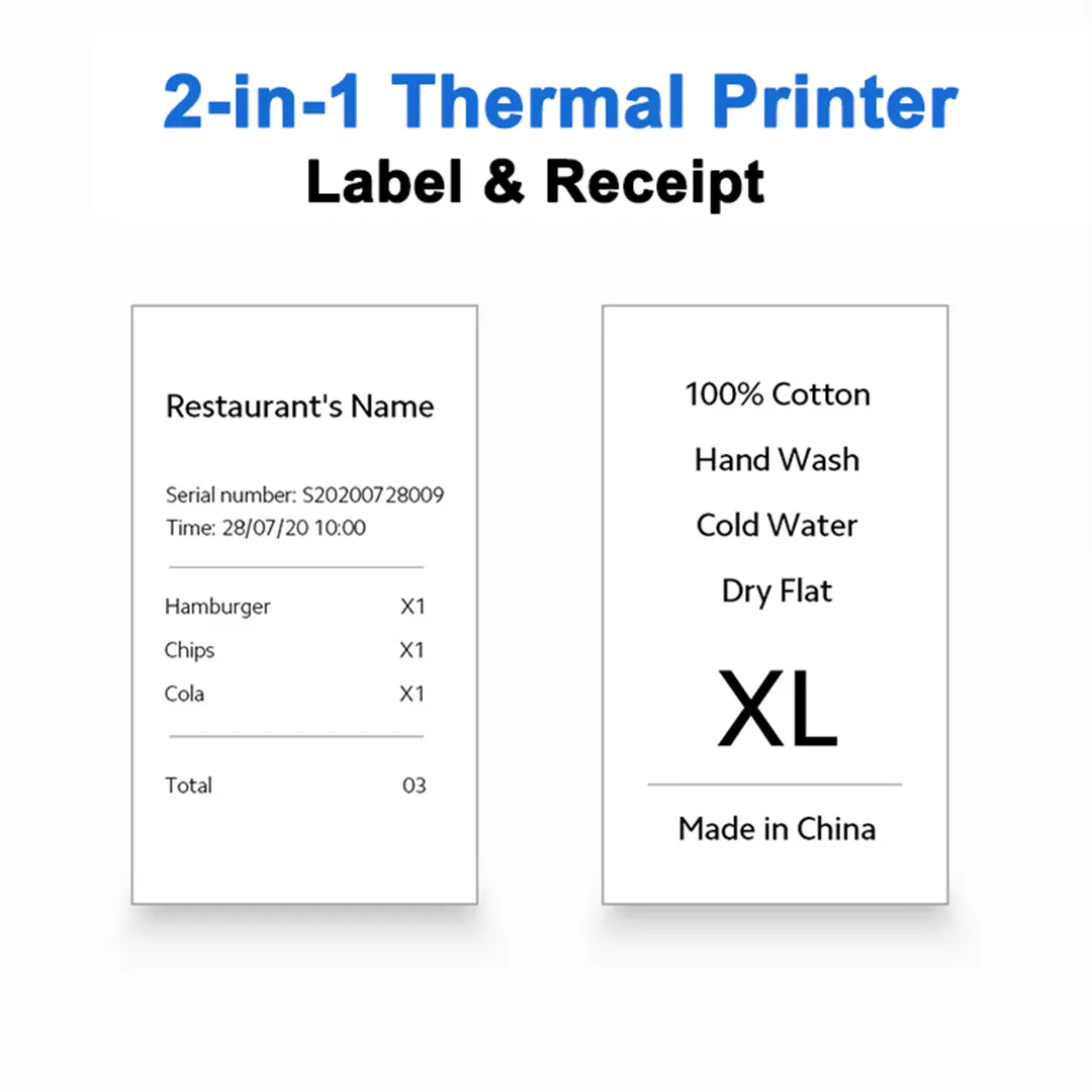 طابعة بلوتوث محمولة 2 في 1 فواتير + لصاقات 80 ملم 8008