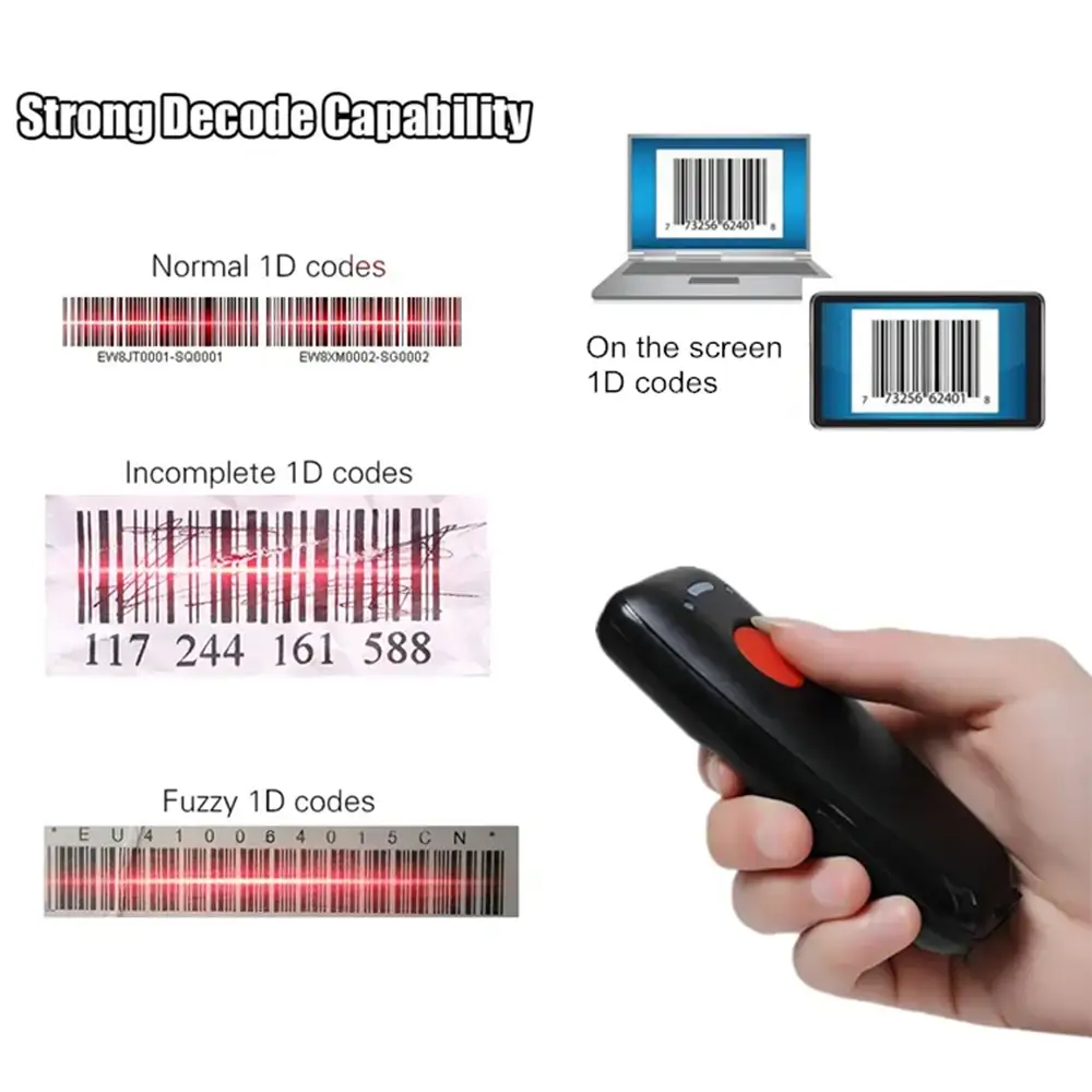Portable 1D 2D QR BT Barcode Scanner Handheld Mini Bar Code